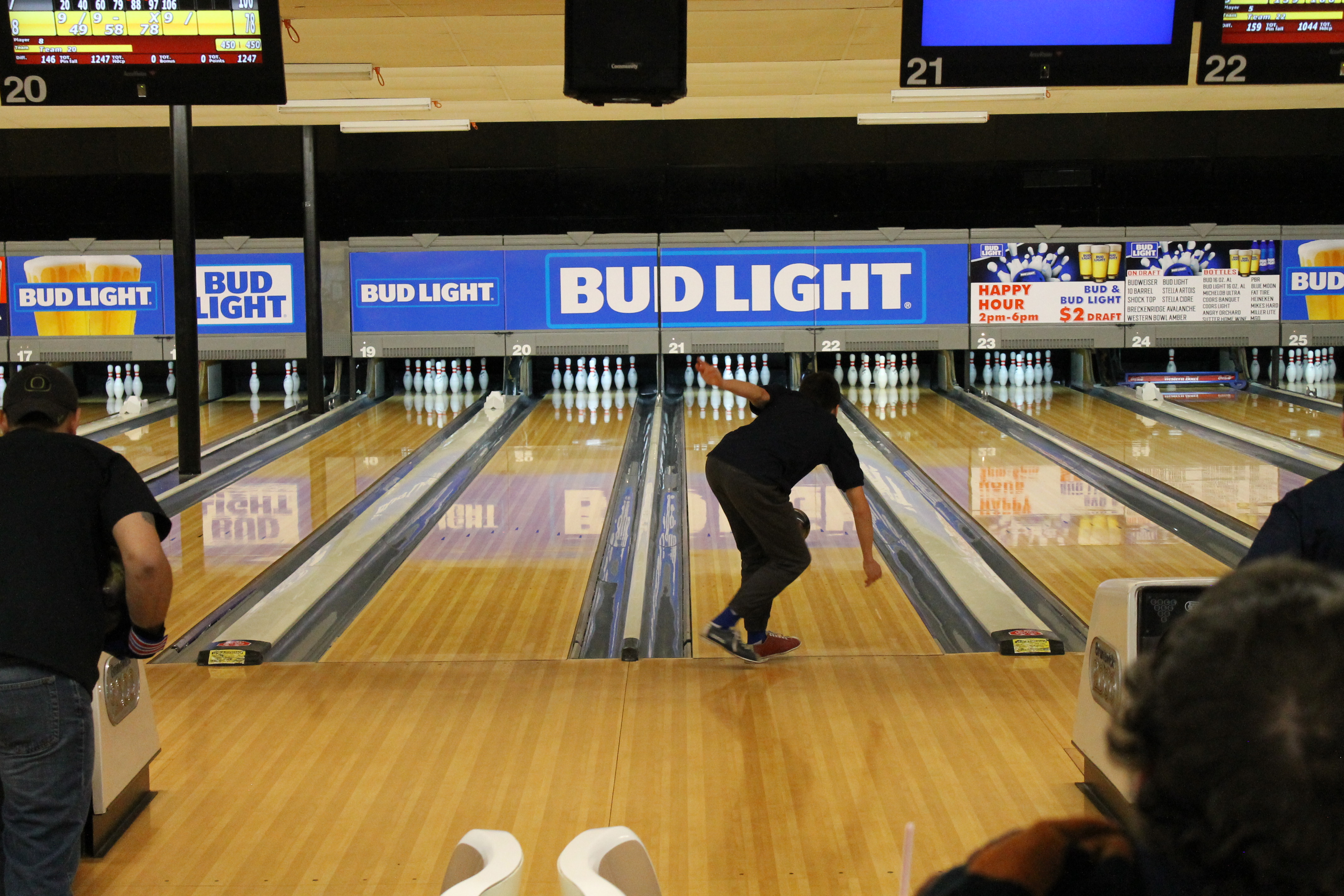 The lanes are turned on for 10 minutes of practice, then the three games are bowled for score. The first 5 minutes of practice time will be performing the one step drill. The second 5 minutes will be the full approach.
